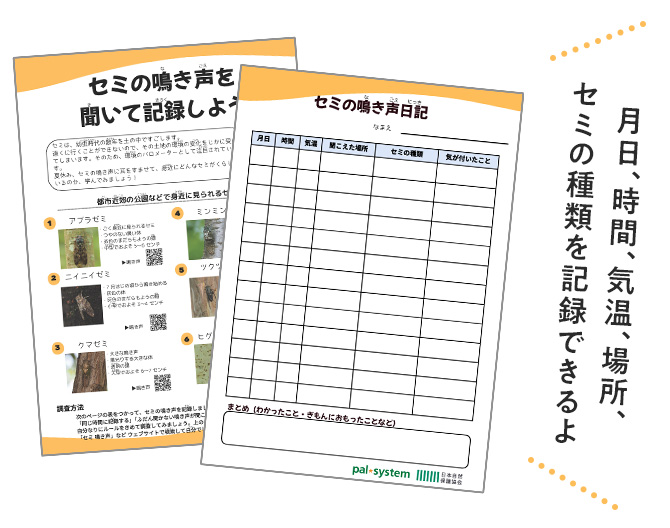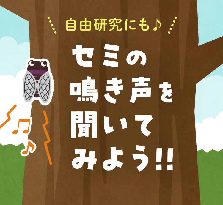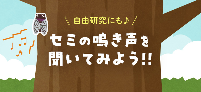 夏の生き物といえば、セミ。鳴き声を聞いて、聞いた月日、時間や場所を記録してみよう!ベランダや公園から聞こえてくる鳴き声に耳をかたむけると、面白い発見が見つかるかも…?