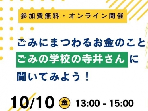 2025年8月18日<受付終了>【10/10(金)オンライン開催】ごみにまつわるお金のこと、ごみの学校の寺井さんに聞いてみよう!