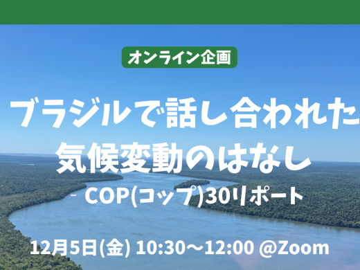 2025年11月14日【12/5(金)オンライン開催】「ブラジルで話し合われた気候変動のはなし‐COP(コップ)30リポート」