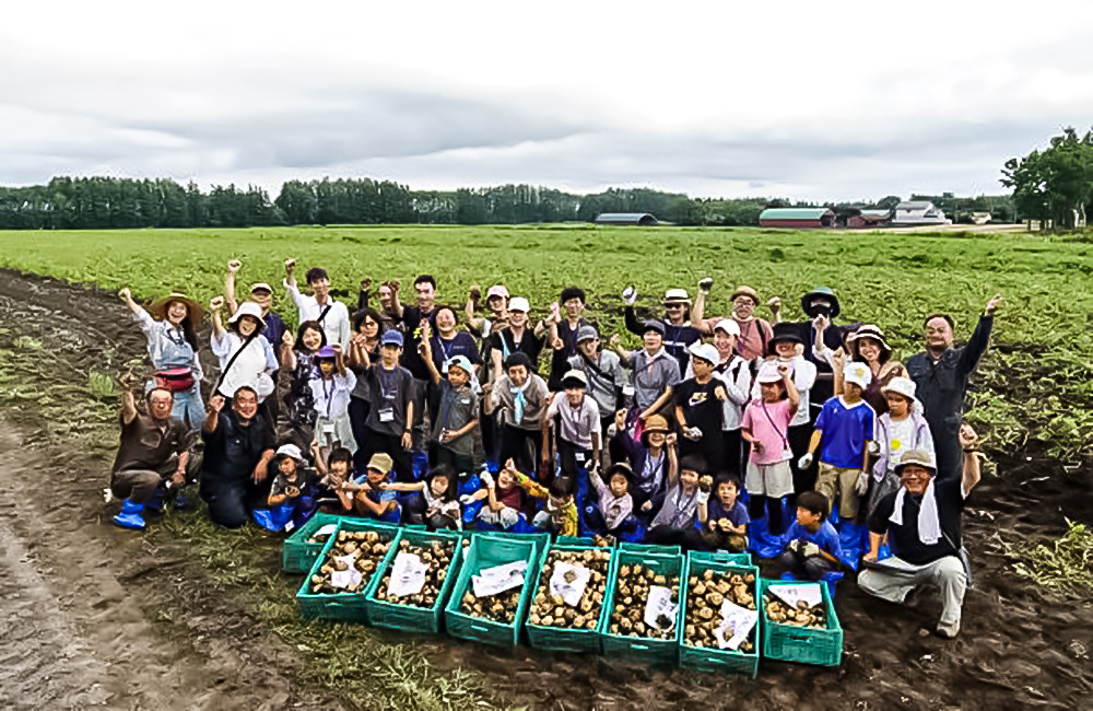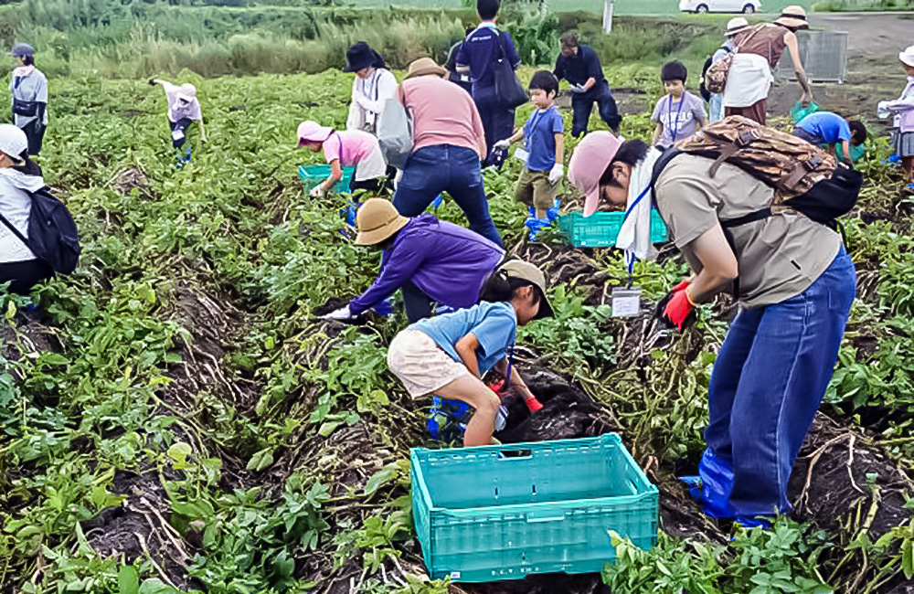 広い畑をてくてく歩いて育つ途中の作物を見た後は、どっぷりじゃがいも掘り。自分で穫ったじゃがいもをお好きな場所にお送りします。家族やお友達のお土産にぴったりです。