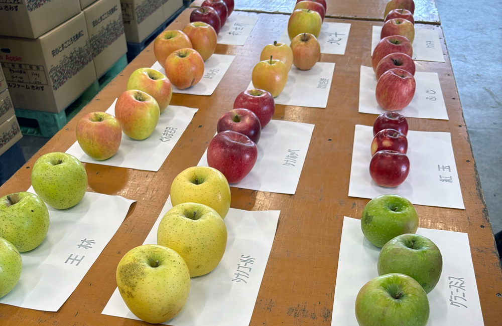 りんごの収穫は晩生種のふじが穫れる11月末まで続きます。その間生産者さんたちは大忙し!今回のツアーでは、りんごの収穫作業や出荷作業、葉摘作業などをお手伝いいただきます。アップルファームさみずで販売している品種は15種類以上。収穫したりんごは傷の有無や大きさなどをチェックしながら1つひとつを選別し、みなさんのお手元に出荷されています。生産者さんからおいしいりんごの見分け方を学びましょう。