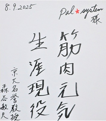 イベントの締めくくりでは、森谷さんの好きな言葉として「筋肉元気 生涯現役」の直筆の色紙も。「『食』は人を良くする行事。何をいつどう食べるのかをしっかり考え、そして今日のような筋トレを実践してほしい。食事と運動の両輪で健康管理をしっかりすることで、健康寿命を延伸しましょう」と力強いエールをいただき、閉会しました。