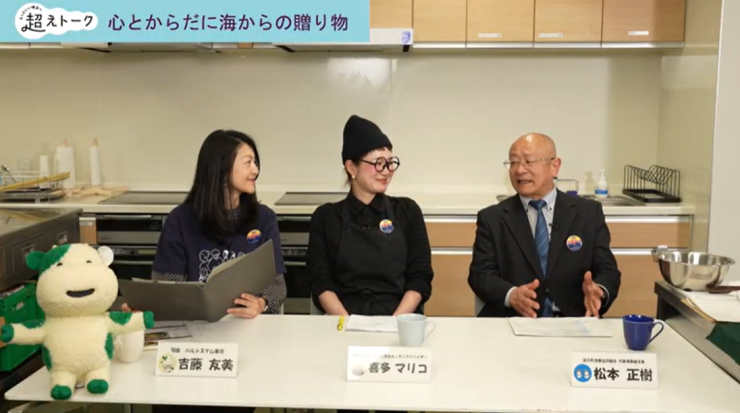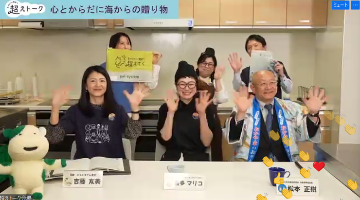 パルシステム連合会は3月6日(金)、兵庫で大人気の料理教室を主宰する料理研究家の喜多マリコさんと、パルシステムの水産産直産地の一つである邑久町漁協の松本正樹組合長を招き、オンライントークイベント「超えトーク(*)」を開催しました。食を通じて産地と直接つながる楽しさや人と人との絆についてなど、お二人からトコトン語っていただき、組合員や役職員ら206名が参加しました。