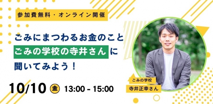 <受付終了>【10/10(金)オンライン開催】ごみにまつわるお金のこと、ごみの学校の寺井さんに聞いてみよう!