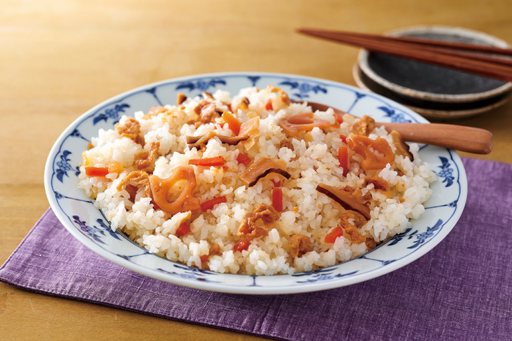 炊き立てごはんに混ぜるだけで、具だくさんの五目ずしが手軽に楽しめる「五目ずしの素」。2026年1月3回注文分より、パッケージをびんからアルミパウチに変更します。