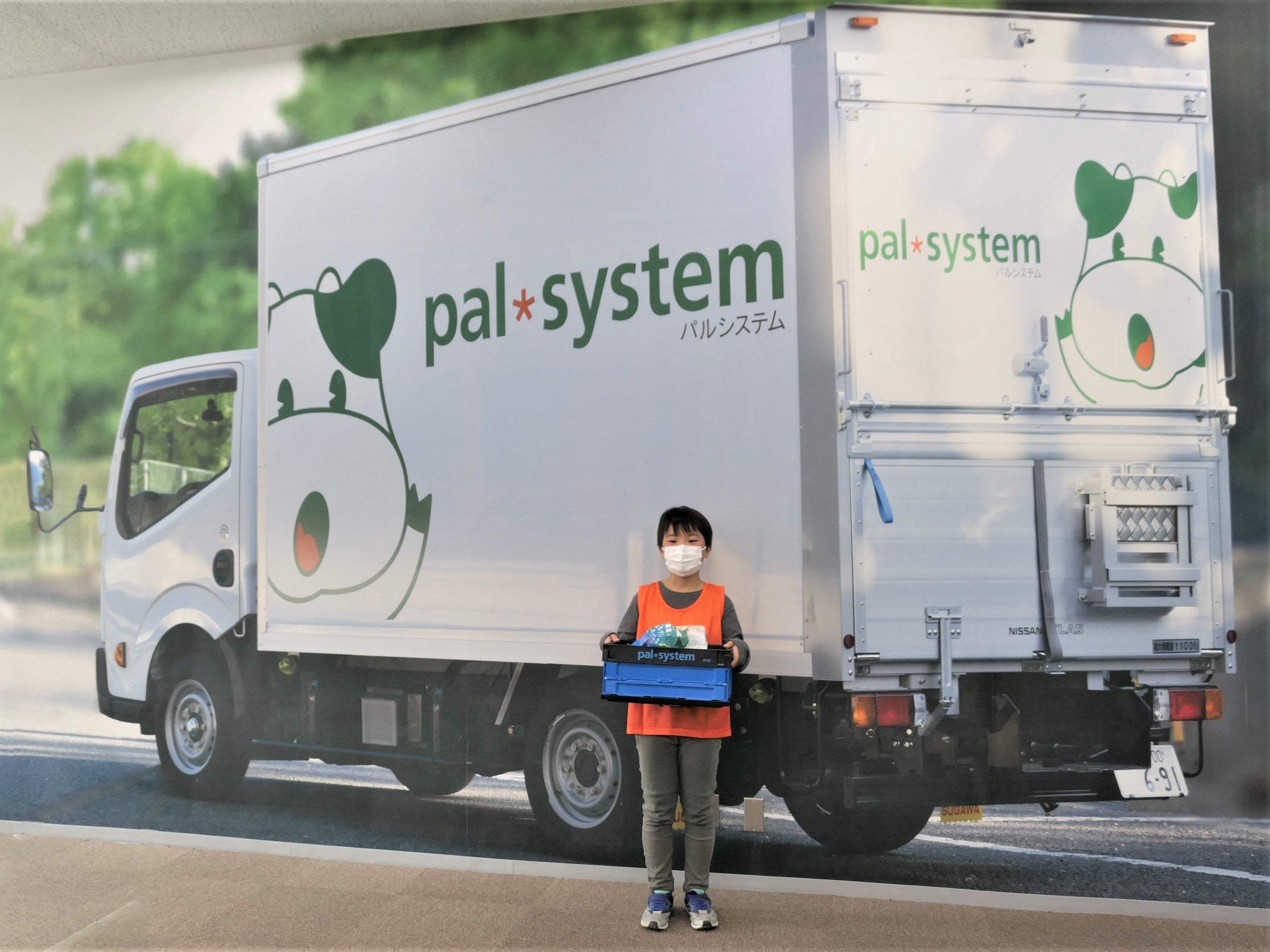 仕分け体験のあとは、壁一面を使用した実寸大のパルシステム配送トラックで記念撮影。