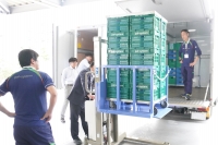 ▲平均総重量100kg前後の蓄冷材積み下ろしにも活用