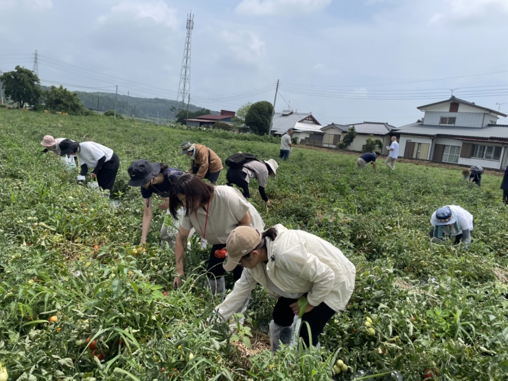 視察はパルシステムオリジナル商品の「旬を味わう国産トマトジュース(食塩無添加)」の9月発売にあわせ、利用者とともに商品や産地への理解を深めるために開催しました。カゴメ株式会社と商流を担う国分首都圏株式会社(本社:東京都中央区、南博貴代表取締役社長執行役員)も参加し、パルシステム利用者と役職員17人とともに計24人が視察しました。加工用トマトを栽培する契約農家の圃場やジュースを製造する那須工場を訪れ、組織を越えて交流を深めました。