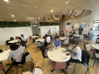 参加者一同は、那須工場でカゴメの歴史や工場の概要を説明する動画を視聴したのち、東京ドーム3個分の面積を有する敷地内を約90分かけて視察しました。生産ラインに投入されたトマトがジュースに加工され、容器に詰めた商品になるまでの一連の工程を見学し、徹底した品質管理と効率化の工夫を確かめました。