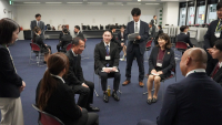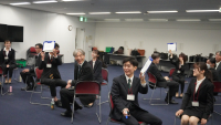 式典の後には、組織への理解を深め、親しみを持ってもらうことを目的に、少人数のグループに分かれクイズゲームやグループトークを行いました。内定者は役員と一緒にクイズの解答を話し合い、テーマに沿ったトークを展開するなど親睦を深めました。役員は内定者から寄せられた質問に答え、残り短い学生生活を楽しんで元気に入協してほしいと伝えました。