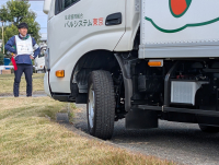 競技は「走行競技」と「タコつぼ競技」を実施しました。走行競技は、スラローム走行や駐車を想定したコースを接触や乗り上げがないように走行し、安全性と正確性を審判が採点します。タコつぼ競技は、タコつぼ型のスペースへ侵入してトラックを脱出するまでの時間を競い、トーナメント形式で行われました。