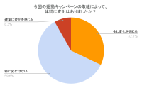 そのなかで「今回の運動キャンペーンの取組によって、体調に変化はありましたか?」(原文まま。回答数109)の質問に「確実に変化を感じる」(8.3%)、「少し変化を感じる」(32.1%)を合わせた回答が40.4%ありました。具体的な変化としては、複数が「体重の減少」「肩こりの軽減」「体力がついた」を挙げました。なかには「頭痛が解消した」参加者もいました。