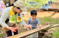 2024年度は68回のイベントを開催し、生き物調査や間伐した竹の工作、畑の収穫体験などに2,476人が参加しました。里山で収穫した野菜を使ってピザ窯で調理するなど、利用者をはじめ地域住民の交流の場として親しまれています。