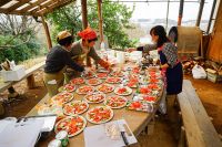 ▲収穫した野菜でピザづくり