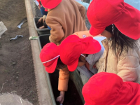 特別授業は、園に通う5歳クラス(年長)の幼児15人を対象に実施しました。初回は「たべものをおいかけよう」として1月22日(木)に実施しました。いつも食べている食品を食卓からたどり、輸送や加工、さらに原料の生産までさまざまな人が関わっていることを説明しました。その後、幼児は屋外へ移動し、プランターで野菜の種を植えました。