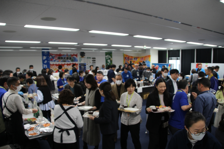試食交流会では生産者・メーカーと会話しながら海の幸を味わいました