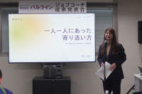 センターでは3年前から毎年、深谷はばたきの生徒が授業で制作した物品や農産物の販売会を実施しています。センター内の作業台や長椅子の制作も学校に依頼するなど、卒業生が働く現場との連携を構築しています。事例は大貫智子ジョブコーチが報告しました。