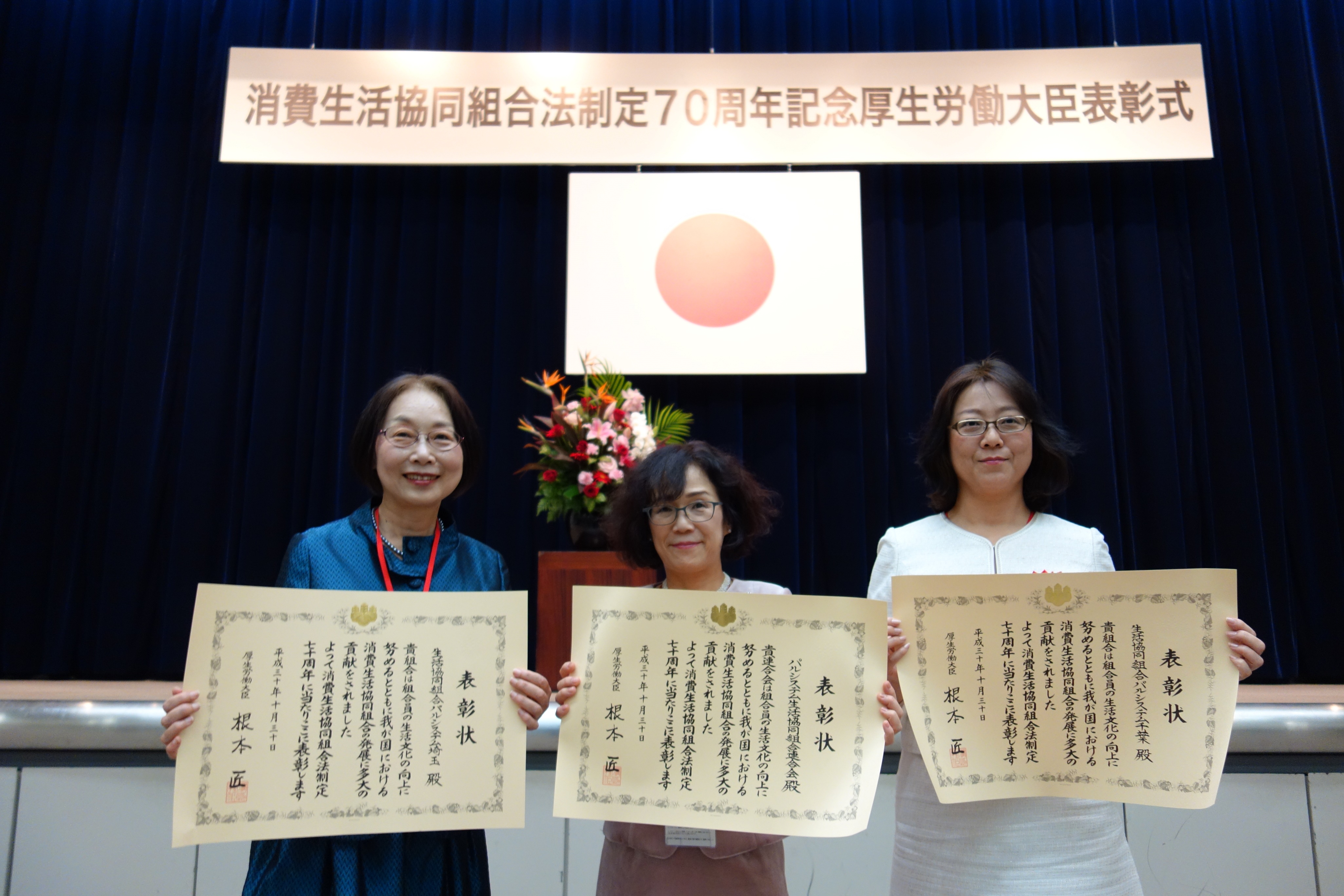 パルシステム千葉、パルシステム埼玉、パルシステム連合会の3団体は10月30日(火)、消費生活協同組合法(生協法)施行70周年を記念した厚生労働大臣表彰を受賞しました。