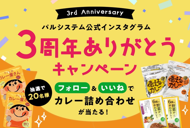 いつもパルシステムをご利用いただき、ありがとうございます。パルシステム公式Instagram(palsystem.official)は、2022年8月25日にアカウント開設をしてから、今月でちょうど3周年となりました。日ごろの感謝の気持ちを込めて、プレゼントキャンペーンを実施いたします!