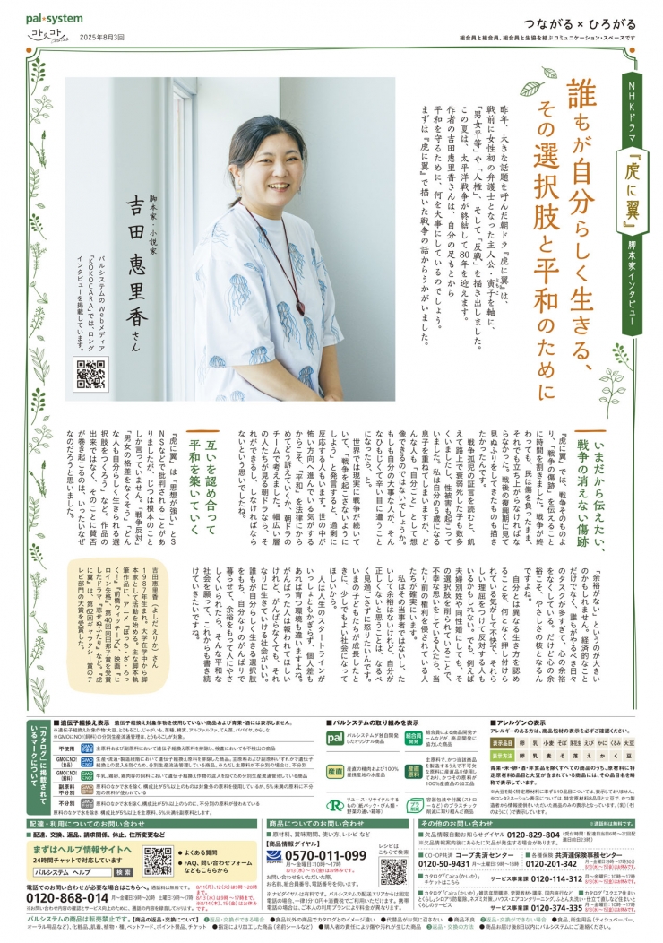 【8月3回】カタログ裏表紙~「コトコト」「Kinari」誰もが自分らしく生きる、その選択肢と平和のために(吉田恵里香さん)