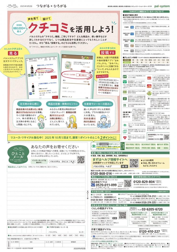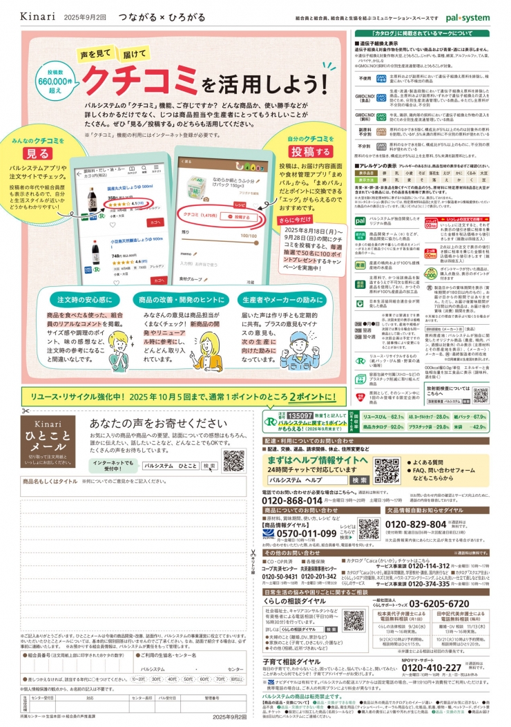 【9月2回】カタログ裏表紙~「コトコト」「Kinari」クチコミを活用しよう!