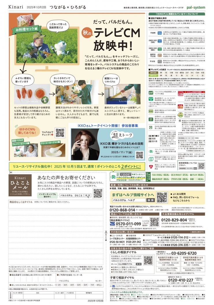 【10月2回】カタログ裏表紙~「コトコト」「Kinari」秋のテレビCM放映中!