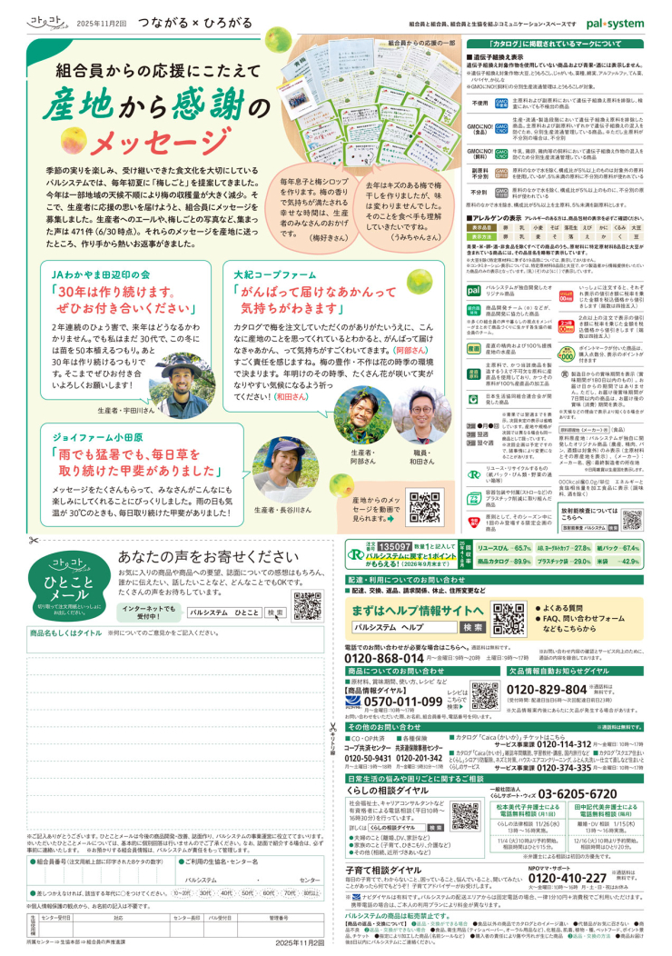 【11月2回】カタログ裏表紙~「コトコト」「Kinari」梅産地から感謝のメッセージ