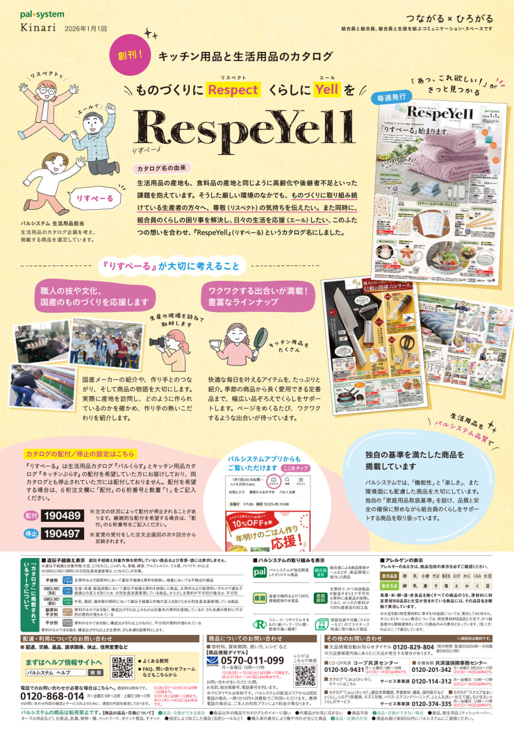 【1月1回】カタログ裏表紙~「コトコト」「Kinari」キッチン・生活用品の新カタログ『RespeYell(りすぺーる)』創刊 2025年12月15日 トピックス カタログ裏表紙 すべて 重要 募集中の企画