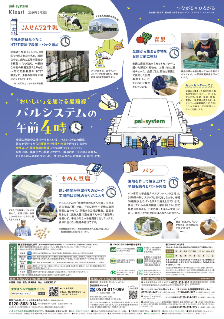 【2月3回】カタログ裏表紙~「コトコト」「Kinari」おいしいを届ける最前線 パルシステムの午前4時
