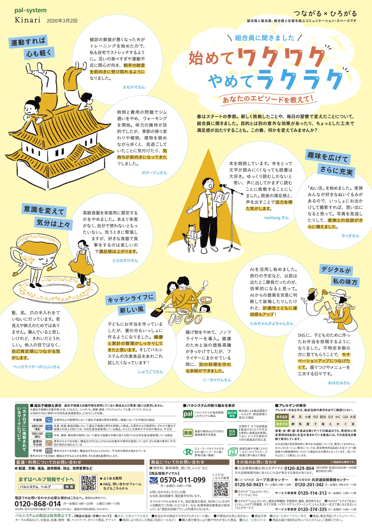 【3月2回】カタログ裏表紙~「コトコト」「Kinari」始めてワクワク やめてラクラク エピソード