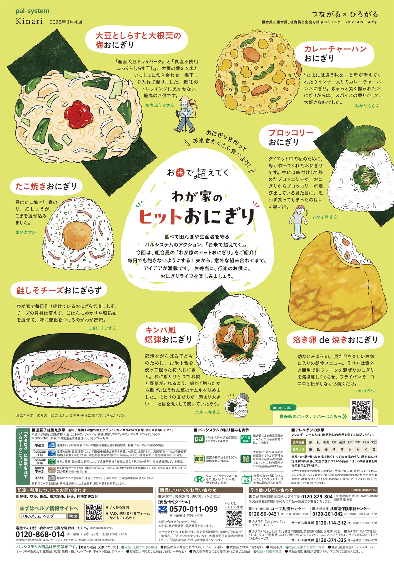 【3月4回】カタログ裏表紙~「コトコト」「Kinari」わが家のヒットおにぎり
