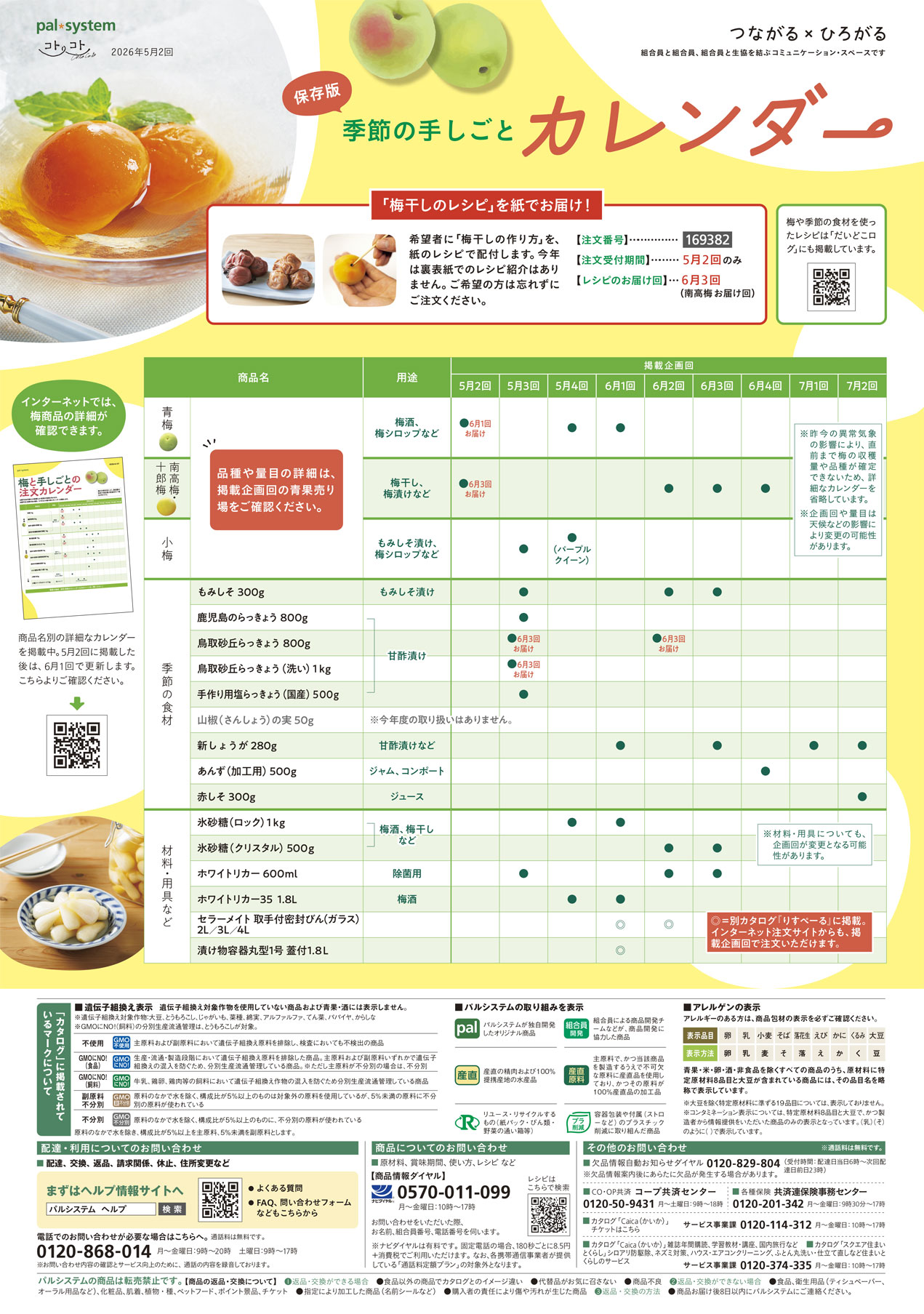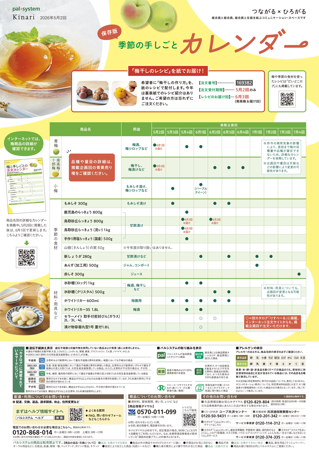 【5月2回】カタログ裏表紙~「コトコト」「Kinari」季節の手しごとカレンダー