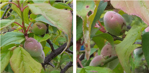 「受粉期に冷え込んでしまったため、不作が予測されていました。ようやく実ができ始めた頃、3回もひょうが降り、ほとんどの実に傷がついている状況です。昨今の気候の変動をひしひしと感じています」